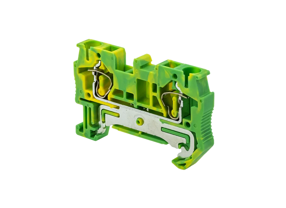 Заземляющие пружинные клеммы MTS-4PE применяются для подключения защитных заземляющих проводников. Клемма фиксируется на DIN-рейке простым защелкиванием без использования инструментов.